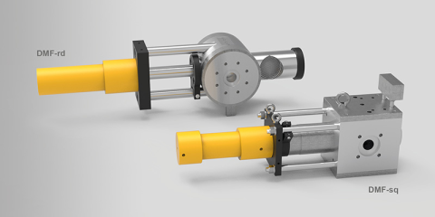 El DMF-sq es adecuado para temperaturas más altas (hasta 350° C) y presiones más altas (hasta 500 bar) gracias a su carcasa cuadrada y se calienta mediante cartuchos calentadores.